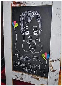 Party Tip: For Finn's Thank You cards I used a picture of the chalkboard sign I made for the party. To make the sign all you need is a chalkboard and wet erase markers, they are so neat and easy to use. I had a lot of fun making this! You can find the markers at any craft store and they have all colors.